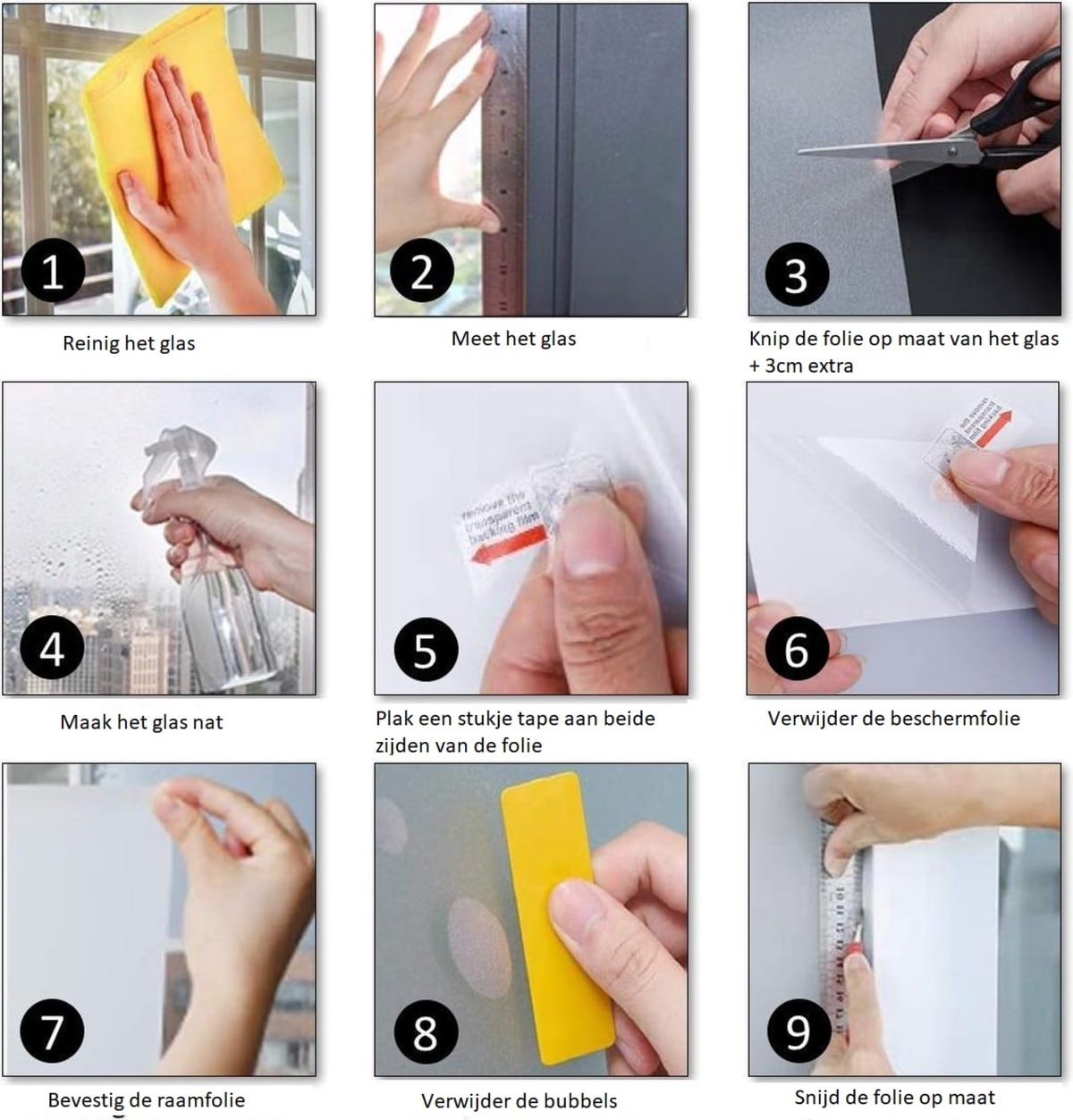 - Knip of snij het glasfolie in een iets groter formaat dan de grootte van het te beplakken raam